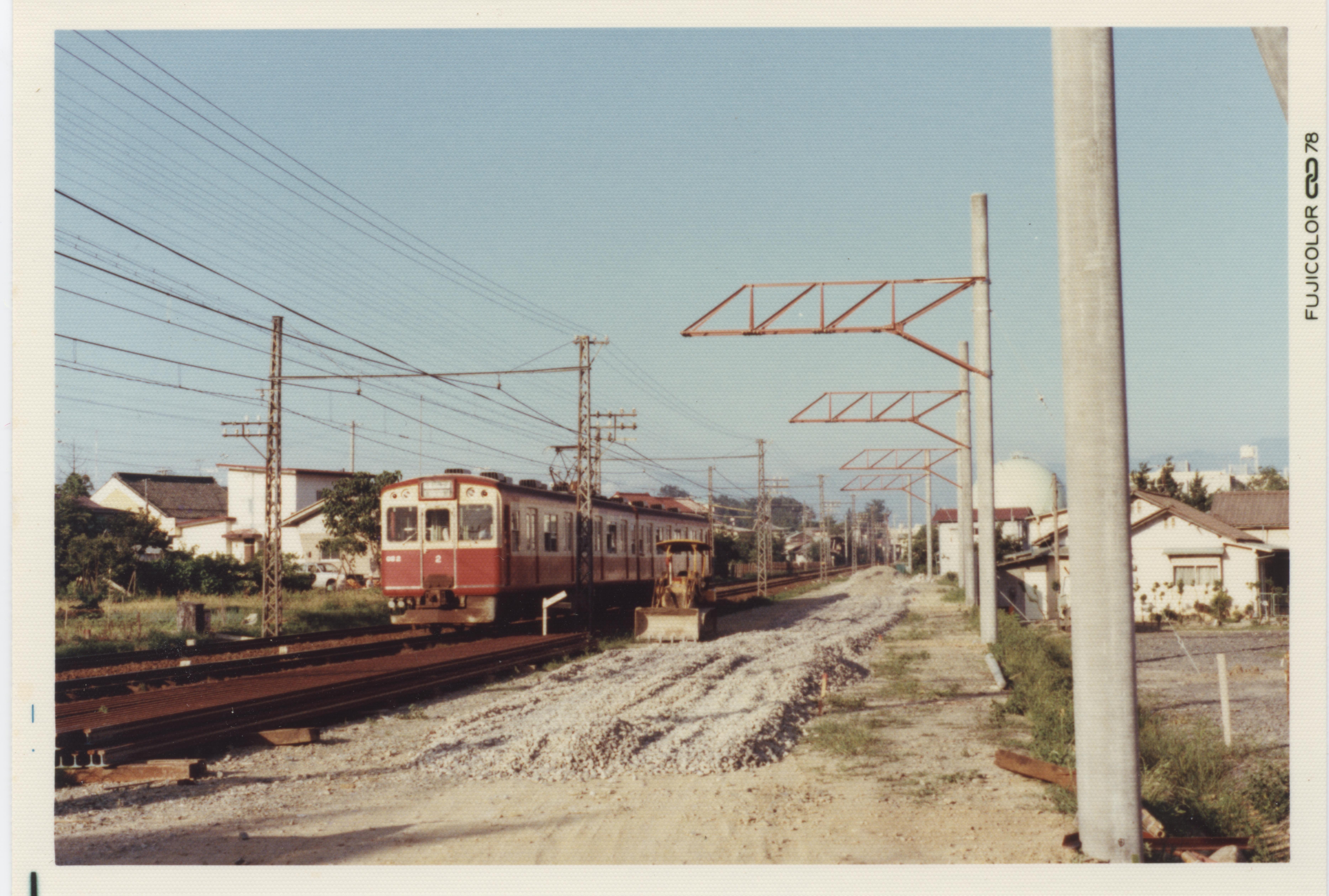 長野電鉄は、かつて、長野駅から善光寺下駅の区間も地上を走っていた。この写真は、この区間が地下鉄化し、線路跡付近に長野大通りが誕生する記録である。