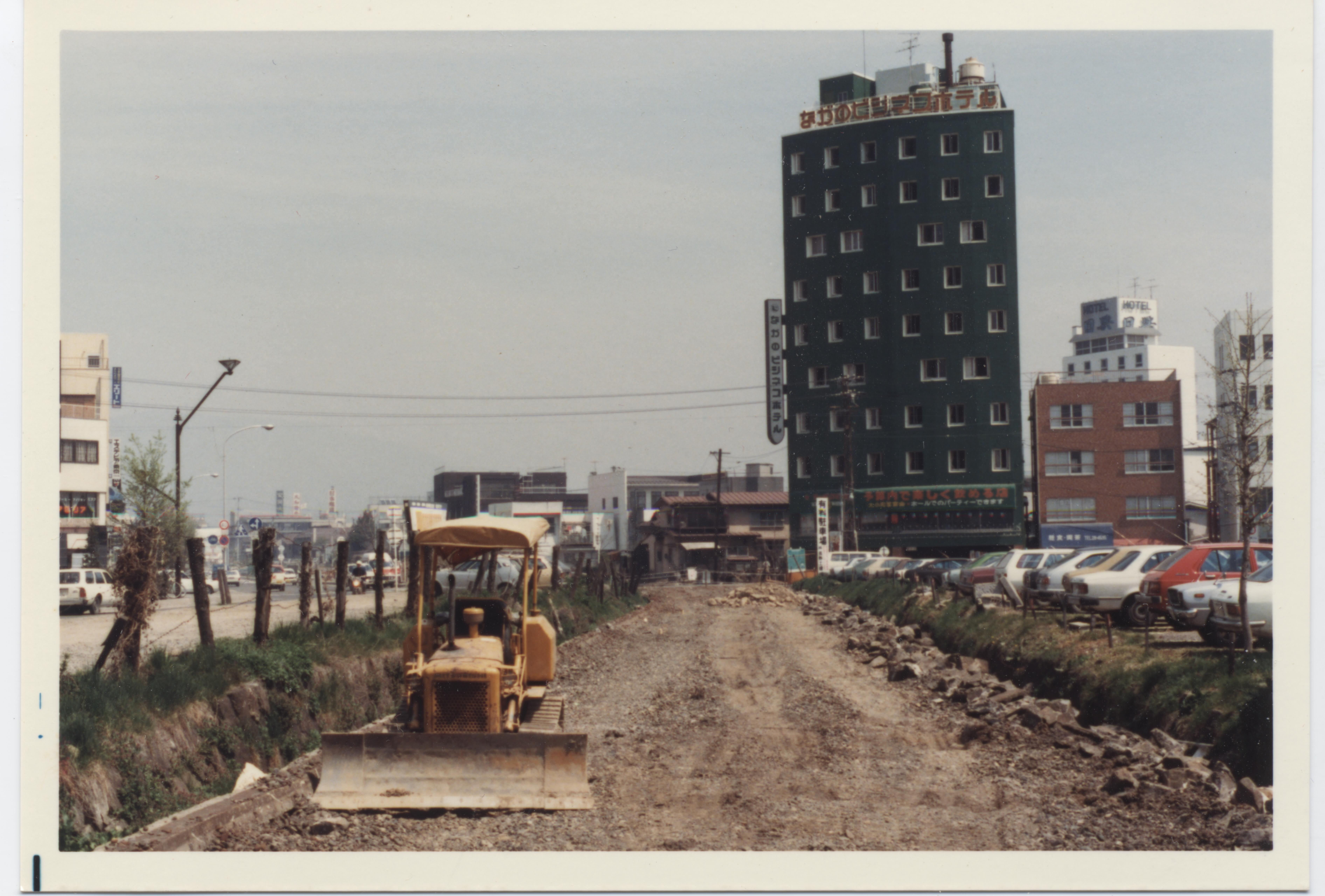 長野電鉄は、かつて、長野駅から善光寺下駅の区間も地上を走っていた。この写真は、この区間が地下鉄化し、線路跡付近に長野大通りが誕生する記録である。