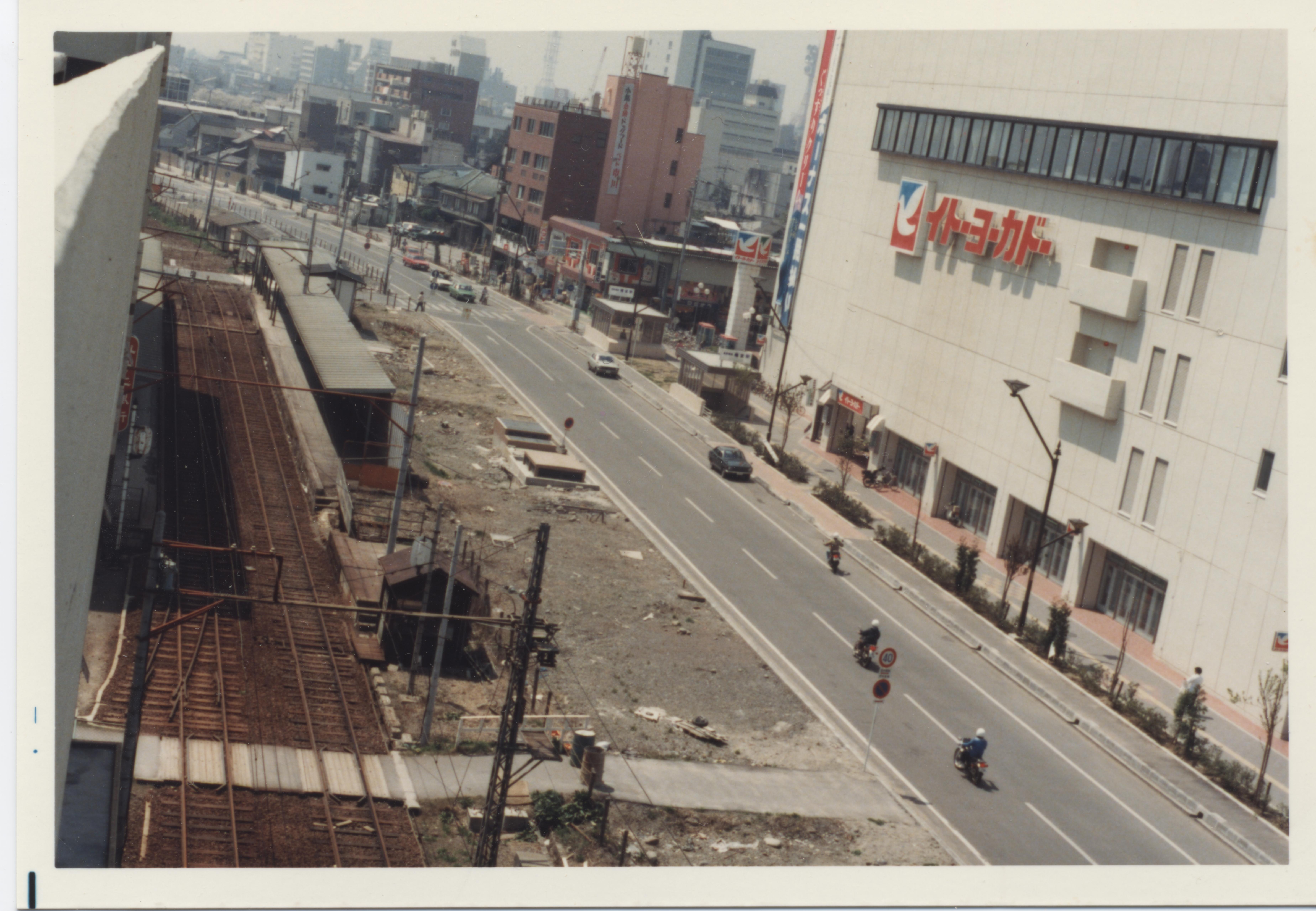 長野電鉄は、かつて、長野駅から善光寺下駅の区間も地上を走っていた。この写真は、この区間が地下鉄化し、線路跡付近に長野大通りが誕生する記録である。