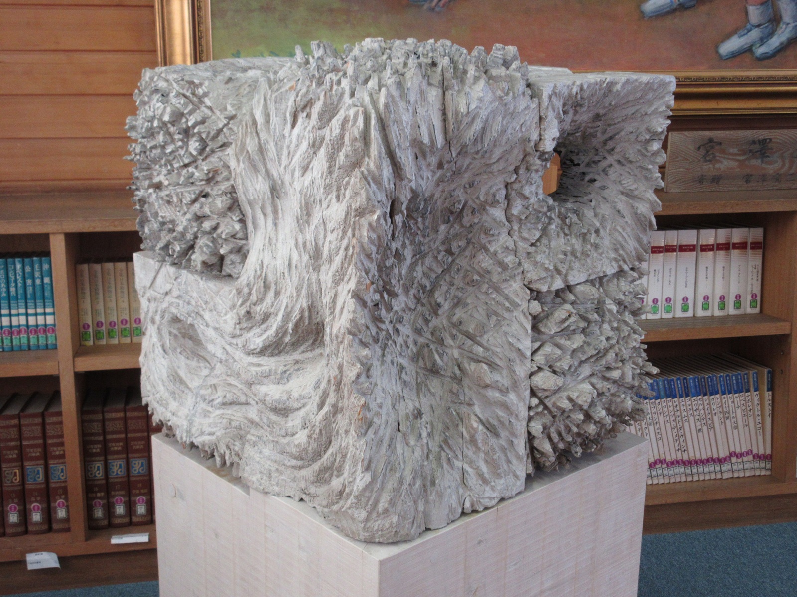 小川中学校の卒業生で彫刻家の戸谷成雄氏(とやしげお/武蔵野美術大学名誉教授)から同校が寄贈された作品。戸谷氏はチェーンソーで木材を削ることで成形する彫刻作品を手がけてきた。