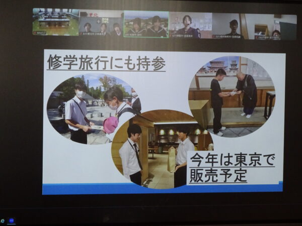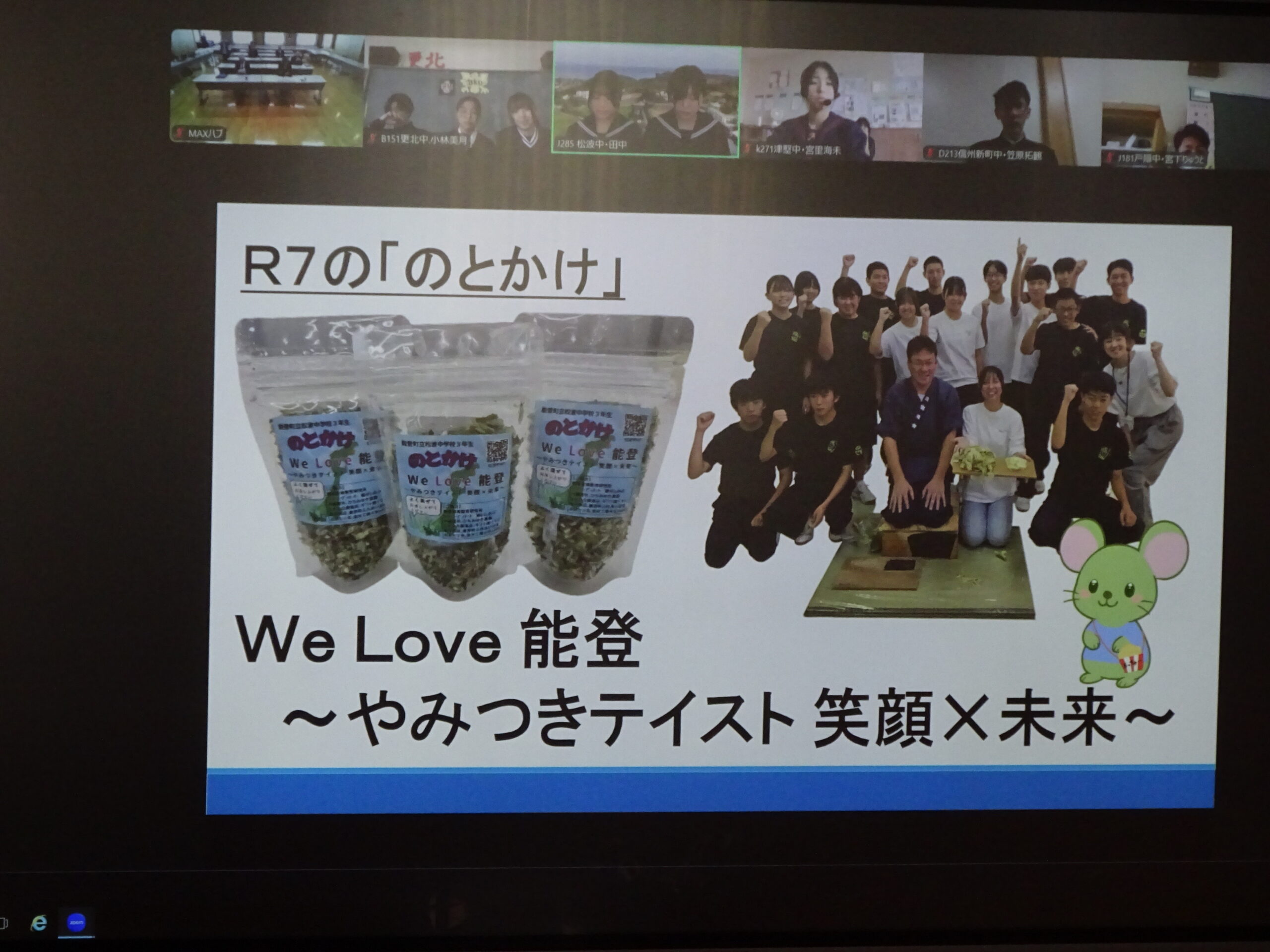 その中でも、地域の業者さんと一緒に開発した「のとかけ」というふりかけについての発表は大変興味深かったです。能登の昆布やわかめなどの食材をふりかけにし、広告やキャラクターなども自分たちで考えて商品化し、地元の商業施設で販売したり、修学旅行先で配布して能登の魅力を伝えたりしているそうです。今年の9月末にいく修学旅行では、東京で販売もしたりするそうです。