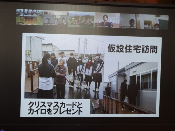 また、仮設住宅への訪問や町へのイベントにも参加するなど、町の人の支えとなり、町の復興にも一役かっている松波中学校のみなさんの活躍の様子を知ることができました。