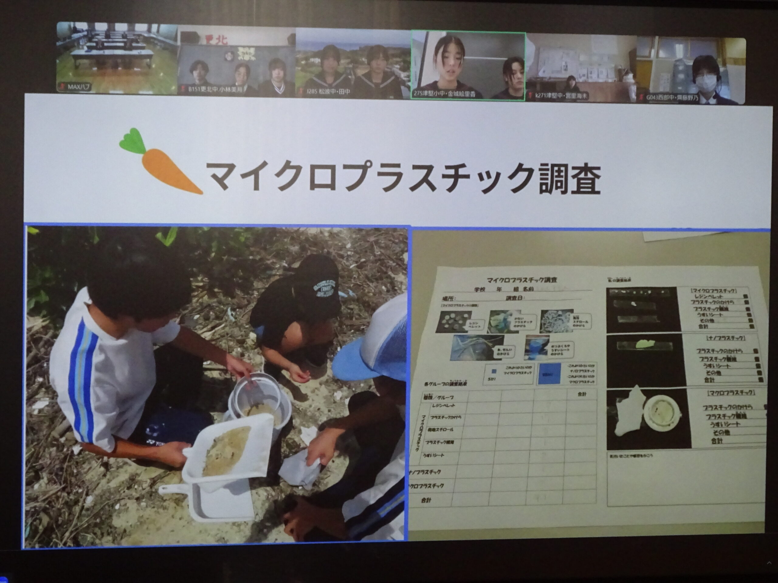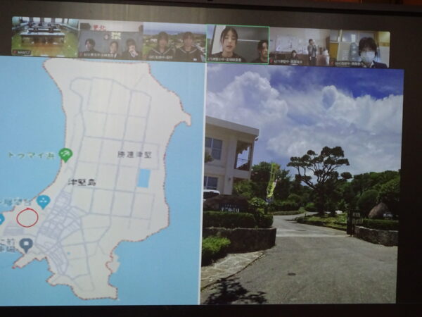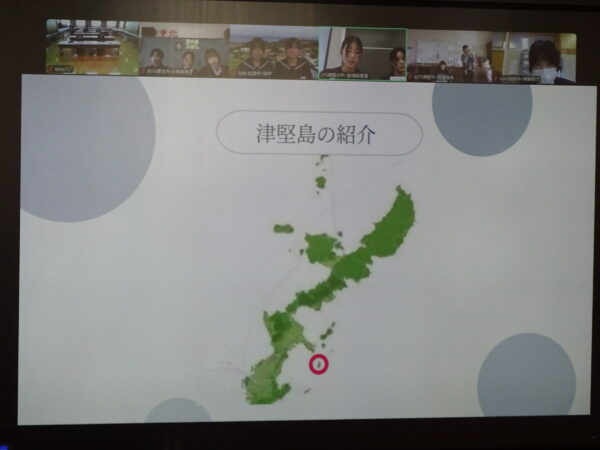 続いて沖縄県うるま市立津堅小中学校の学校紹介でした。津堅小中学校は沖縄本島から船で15分のところにある津堅島にある全校生徒11名の学校です。周囲を海に囲まれ、ニンジン栽培やもずく漁が盛んな島です。