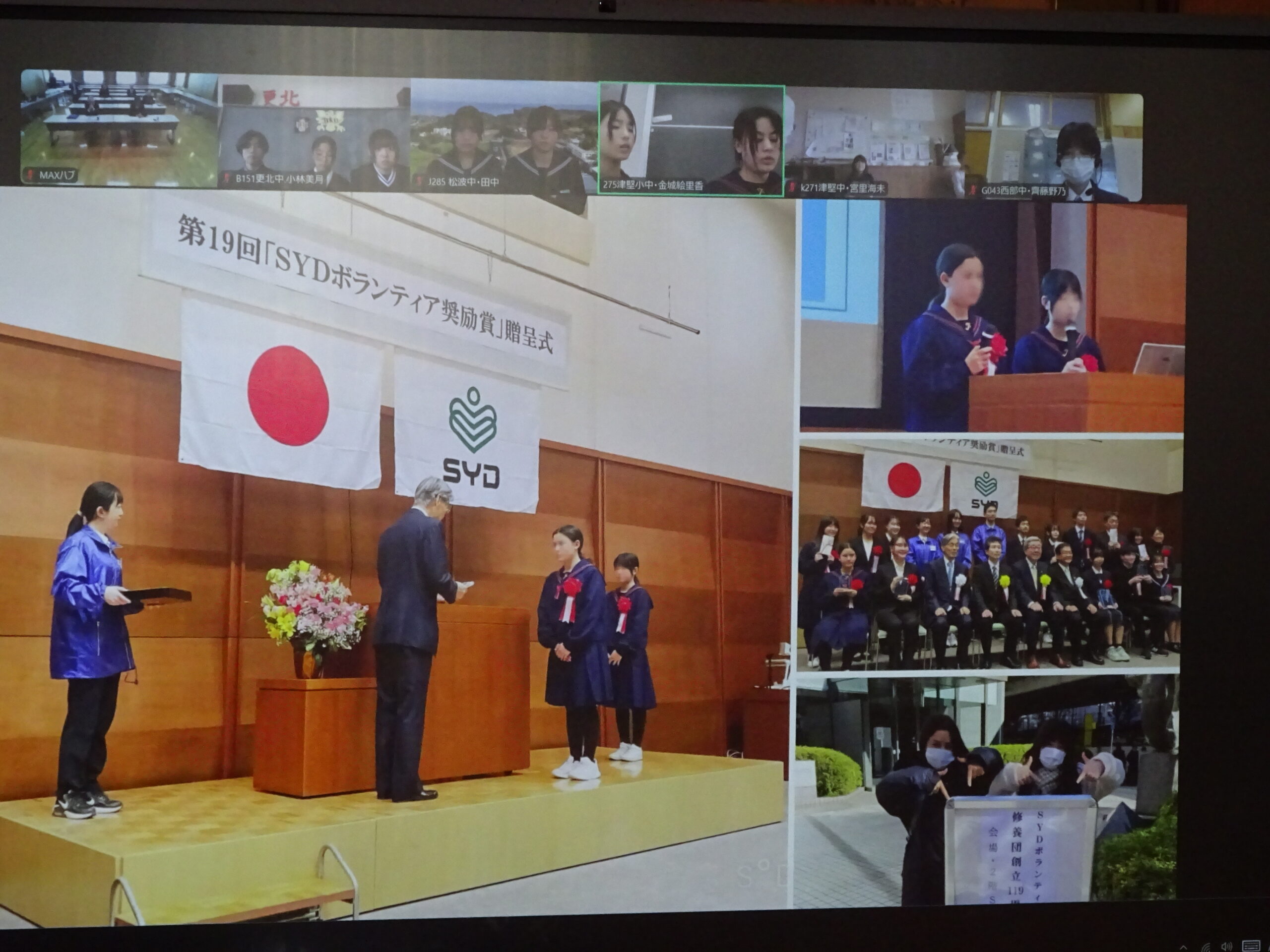 ふるさとの海を楽しみながら、大切な海の環境を守るために力を入れている海岸清掃について紹介してくれました。その活動が認められ、第19回SYDボランティア奨励賞を受賞したとのことです。全国で74件の応募があった中で、受賞は5団体のみだったそうです。