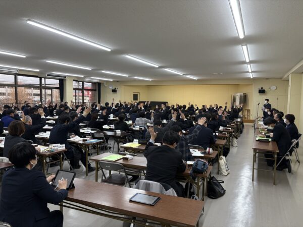 代議員の皆様には、年度末のお忙しい中をお集まりいただきありがとうございました。昨年度に引き続き参集での総会でしたが、会場のあちこちで、先生方同士で話に花が咲いている様子があり、「つながり」の大切さを改めて感じました。「顔を合わせる」ことの大切さも実感したところです。そうした教育会ならではの「つながり」の良さを、より大勢の方に感じていただくためにも、各校での呼びかけをよろしくお願いいたします。