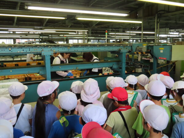 ・昭和小学校3年生の子どもたちは、共撰所を見学させていただき、桃の出荷の様子について勉強しました。