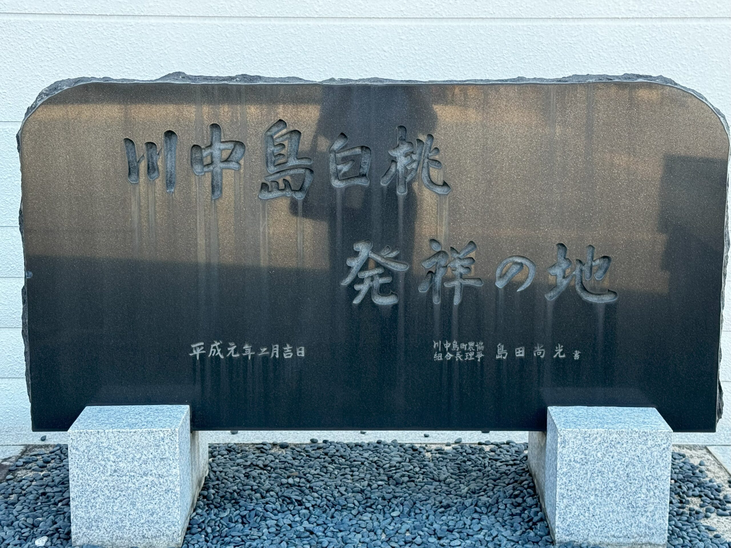 ・川中島共撰所には、「川中島白桃 発祥の地」という碑があります。