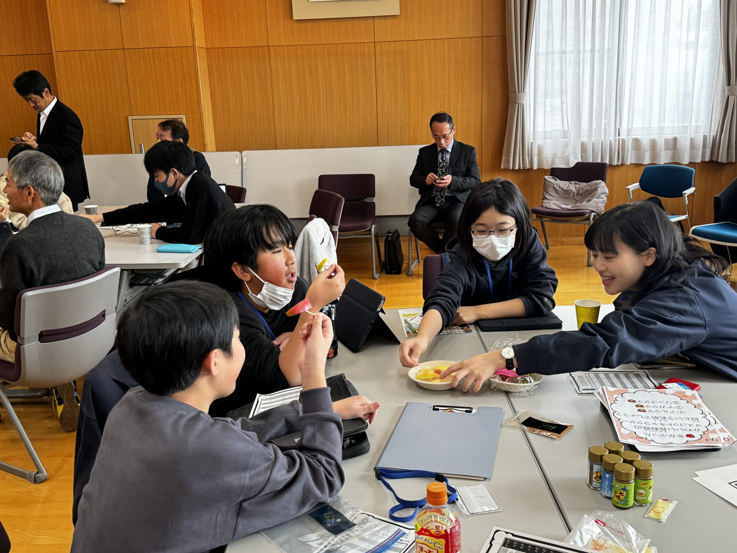 「地域を盛り上げるための七味をブレンドしてみよう!」というテーマのもと、一人一人がオリジナル七味を作る活動に挑戦しました。報告会では、自分たちの作ったオリジナル七味(冬七味・神七味・お子様七味)をスープ・そば・たこやきにかけて味わってもらい、皆さんから感動をいただくことができました。「しっかりできて良かった」「自分が食べられる七味を実際に作ることができて、完成した時はすごく嬉しかった」「活動を通して『助け合い』と『地域貢献の楽しさ』を学んだ。来年度・再来年度と繋げていただければいいと思う」という感想がありました。