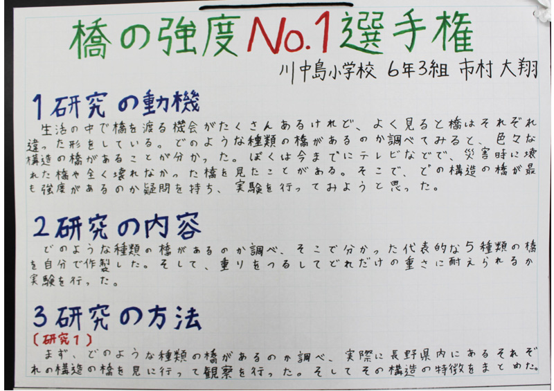 本年度も長野・上水内水科学作品展へのご協力ありがとうございました。応募総数が小学校523点と、多数の出品がありました。本年度は中学校の出品も2点ありました。出品作品の中から県展出品作品の選出のため、審査を行いました。どの作品も研究の動機がはっきりしており、熱心に探究している子ども達の姿が浮かんできました。どの作品も工夫し、分かりやすくまとめてありました。