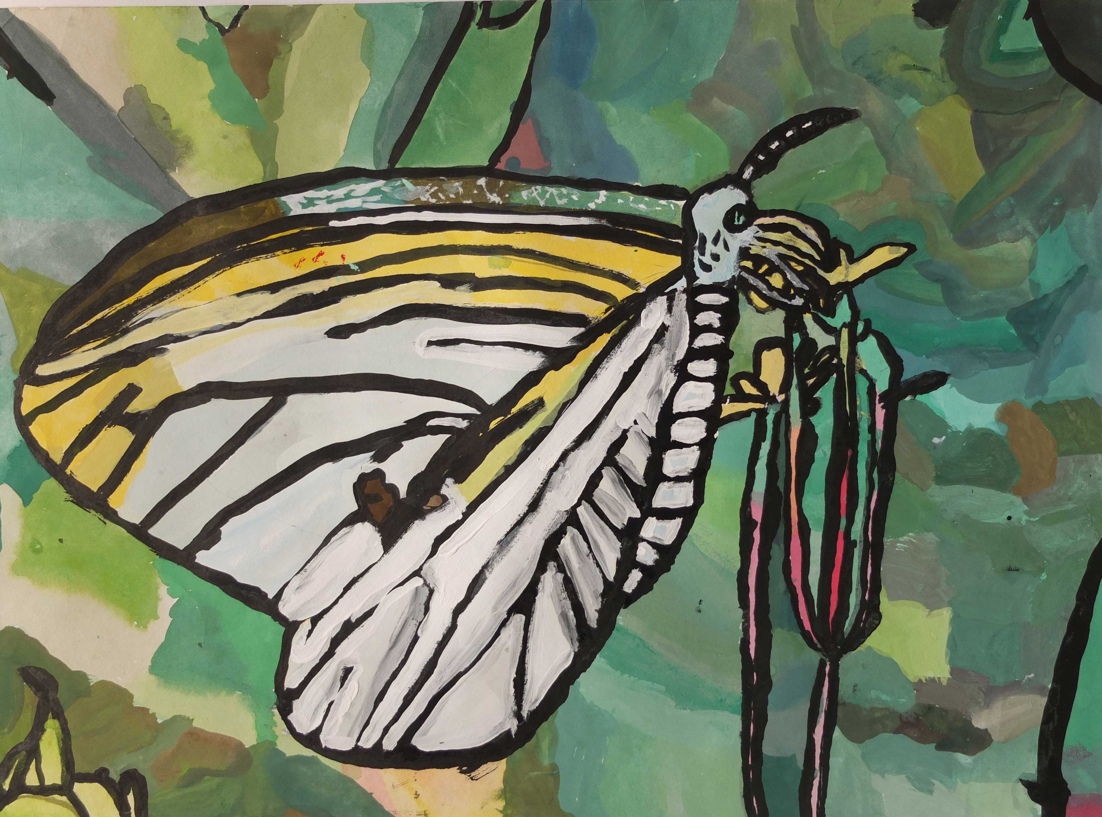 理科のこん虫の学習で、モンシロチョウを育てたよ。自然に帰ったモンシロチョウが元気にみつをすっているといいな。