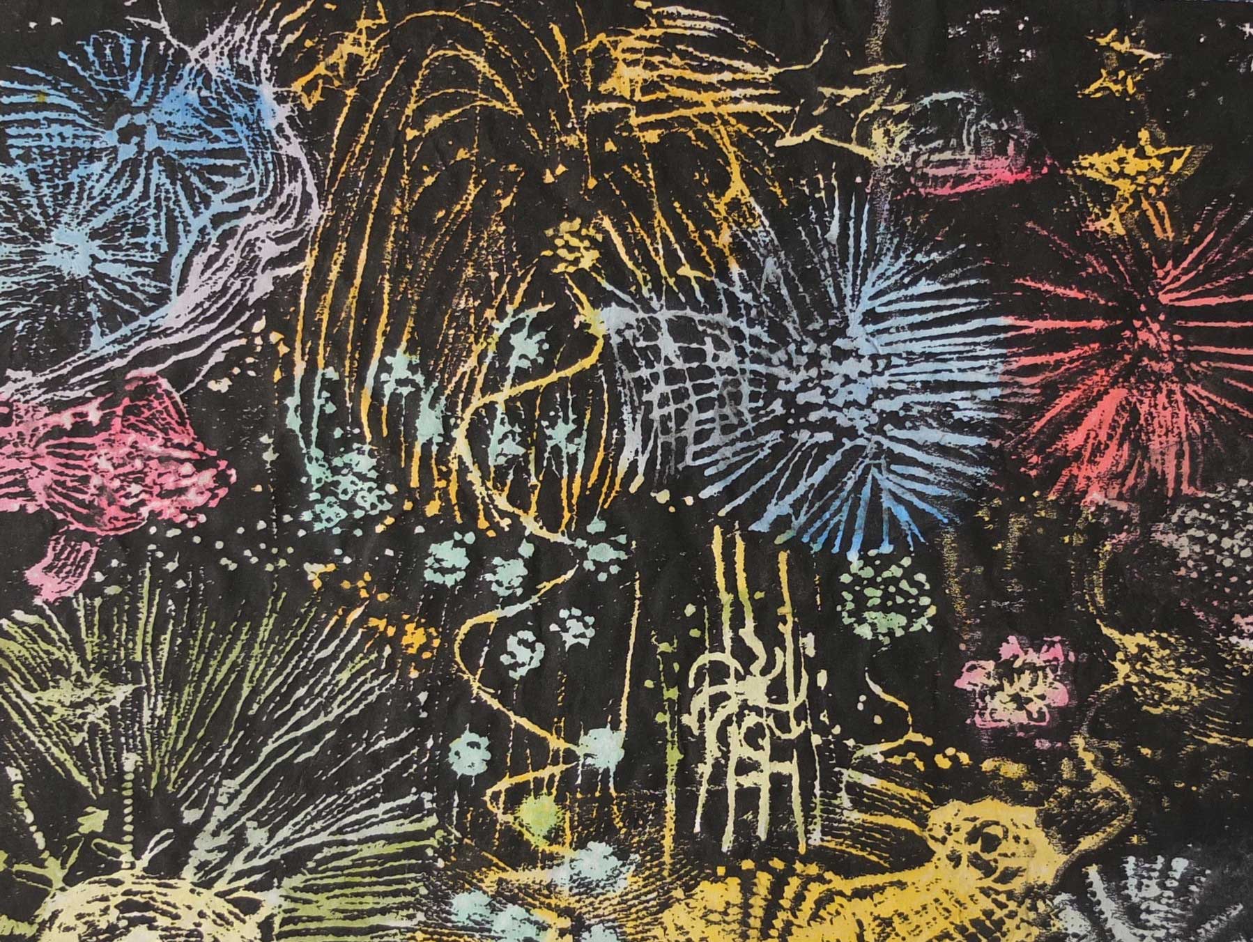 暑い夏にすずしくなるような金魚の形を花火にして表しました。